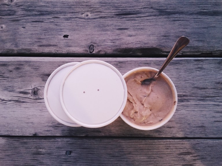 Pack into freezer safe containers like these, or use paper containers such as these, and freeze for a couple hours. It may seem like a lot to go through for ice cream, but it’s easy and I think you’ll agree it’s completely worth it after the first crunchy, coffee-flavored bite.