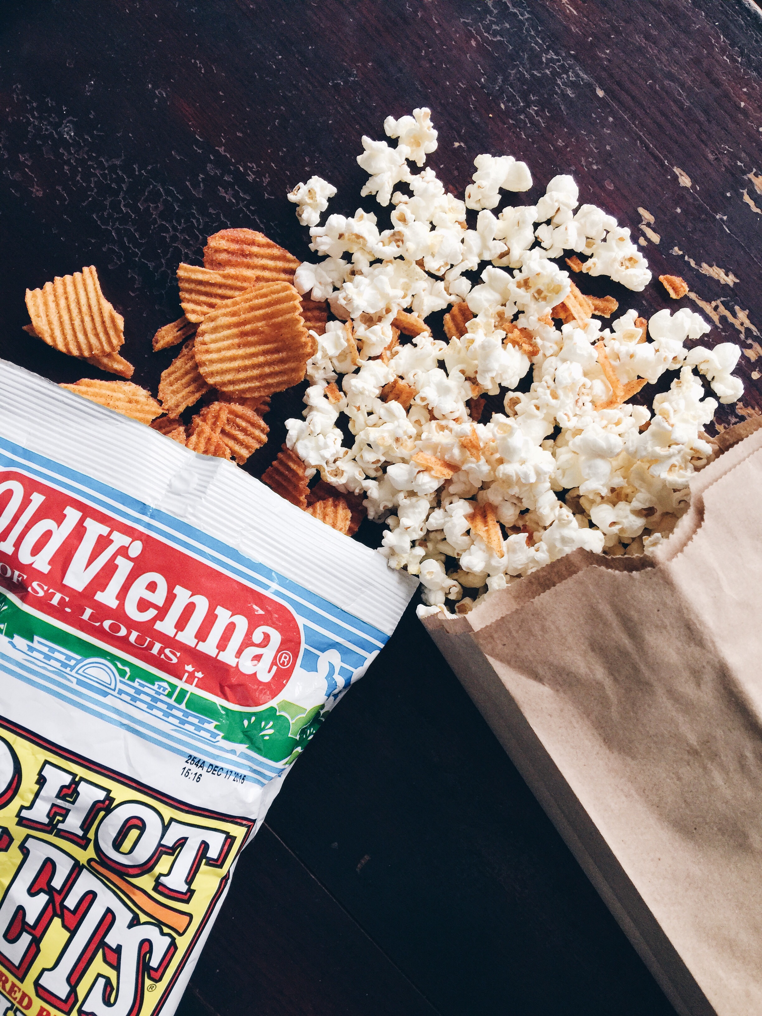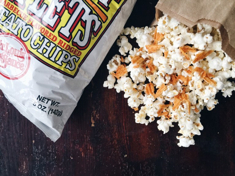 Now that things have settled a bit, I figured it was time to resume Popcorn Thursdays. There are also a TON of shows either starting tonight or continuing their season, and there will certainly be a need for good popcorn. The version I created today is pulled straight from my favorite potato chip flavor, enhanced with a more recent favorite. I absolutely adore salt and vinegar potato chips. The saltier and tangier, the better. Even as a kid, I loved the mouth-puckering flavor. I just knew it would work well on popcorn, and it does! Since moving to the St. Louis area 4 years ago, I have become a fan of Red Hot Riplets. They are a hot, barbecue flavored, ridged chip that manages to give both heat and flavor. I think I ate almost an entire bag when I first tasted them and even my daughters were on board after the first bite. Unfortunately, I don’t think they are available outside the STL area, but you can order them here or substitute any barbecue or spicy flavored chip and it’ll be just as delicious.
